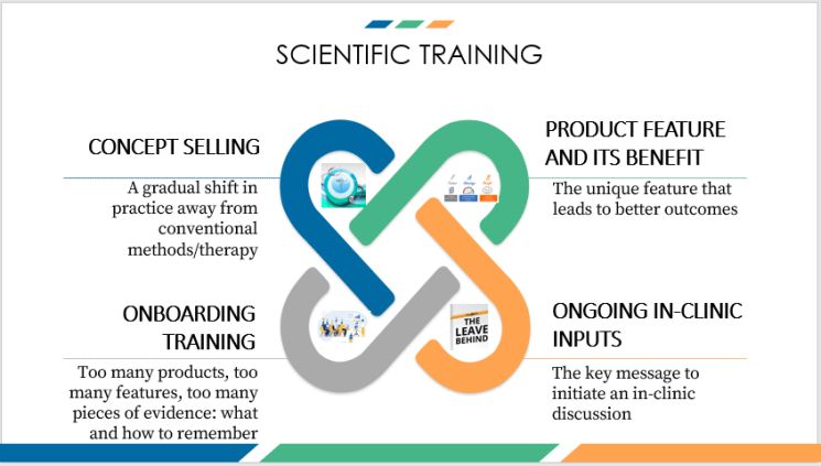 In this part 2, we look at the most difficult part of sales rep training, the scientific pieces of evidence in favor of the product/product feature. The aim of the marketing or medical affairs professional might be either to bring about a gradual shift in practice away from conventional methods/therapy or highlight evidence in favor of a product feature to indicate that the presence of the feature leads to better outcomes. I will provide an example here. Maybe core temperature monitoring is not conventionally being done for gynaecology surgeries. There might be scientific evidence/guidelines about why monitoring core temperature in such surgeries is essential and the risks of not following this practice. By propagating evidence over a prolonged period and at regular intervals, there is an attempt to bring about a gradual shift in practice so that more and more gynaec surgeons start monitoring the core temperature. Whereas an example of highlighting evidence in favor of a product feature to indicate that the presence of the feature leads to better outcomes could be how a combination pack of an antibiotic with capsules of lactobacilli could reduce the adverse gastrointestinal effects of the antibiotic.